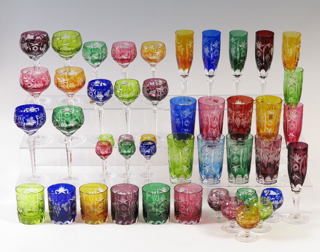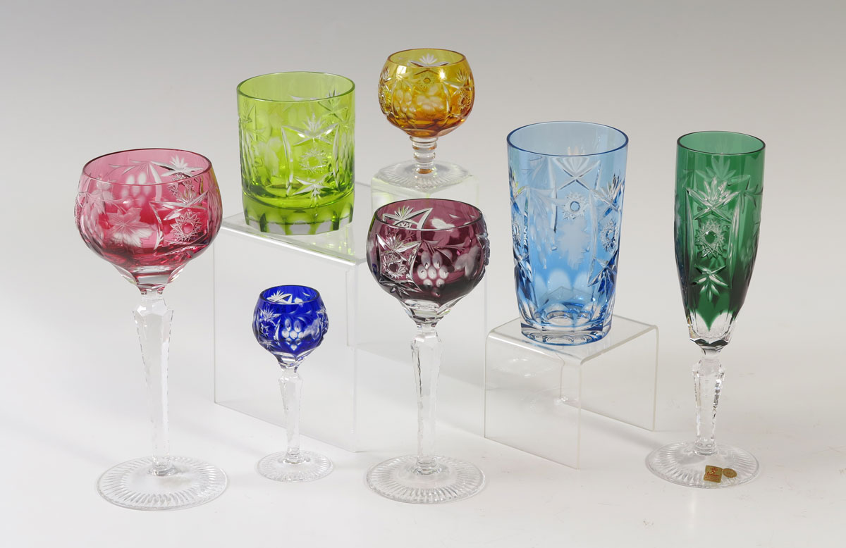 LARGE LOT OF BOHEMIAN GLASS STEMWARE: Approx. 46 pieces to include waters wine, cordial, champagne, tumblers, and highball. Tallest (champagne) 8 1/2'' h.