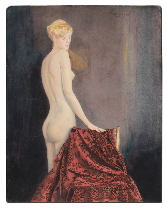SPADER, William Edgar, (American, 1875-1954): Blonde Female Nude, Watercolor, 13 7/8'' x 11'', signed upper right, unframed.