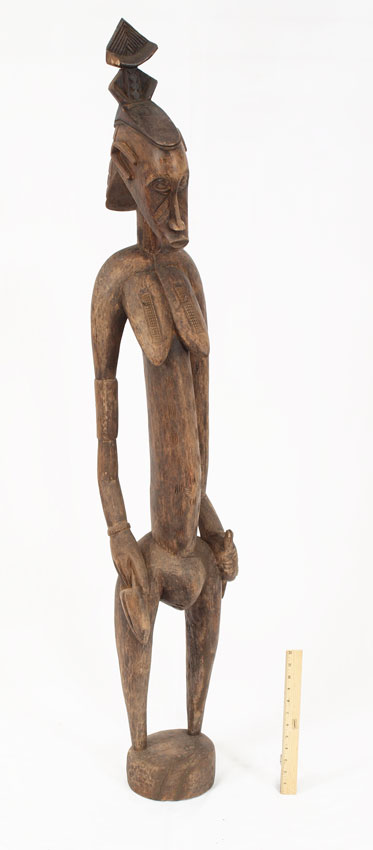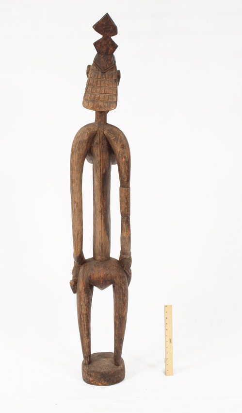 CARVED AFRICAN TALL SENUFO FEMALE FIGURE: 57'' x 10'' x 8'', 25.5 lbs.