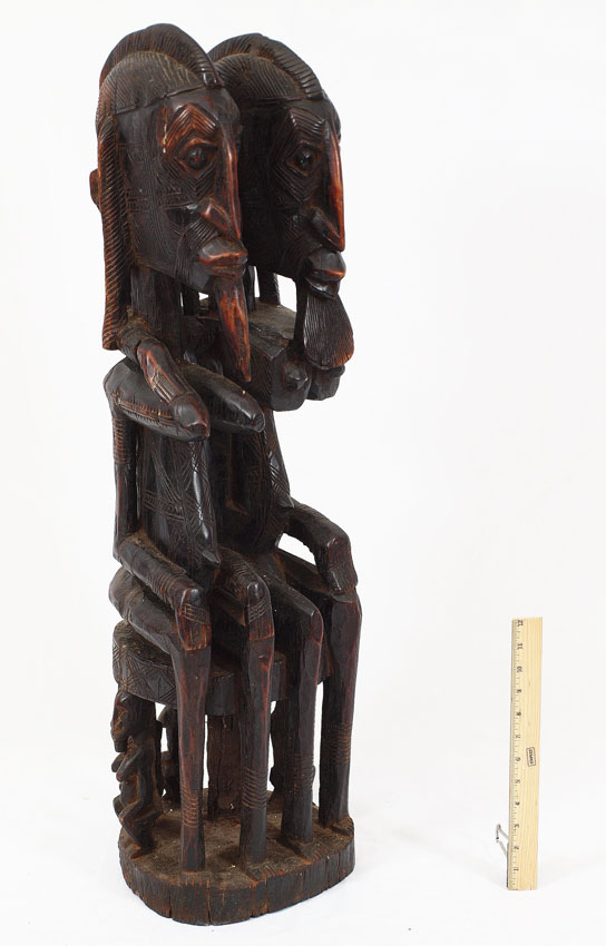 CARVED AFRICAN DOGON PRIMORDIAL COUPLE, MALI: 36'' x 10'' x 10'', 37 lbs.