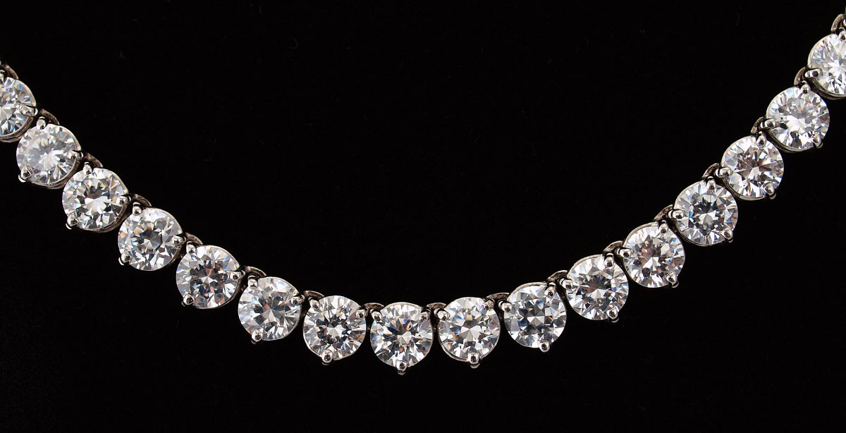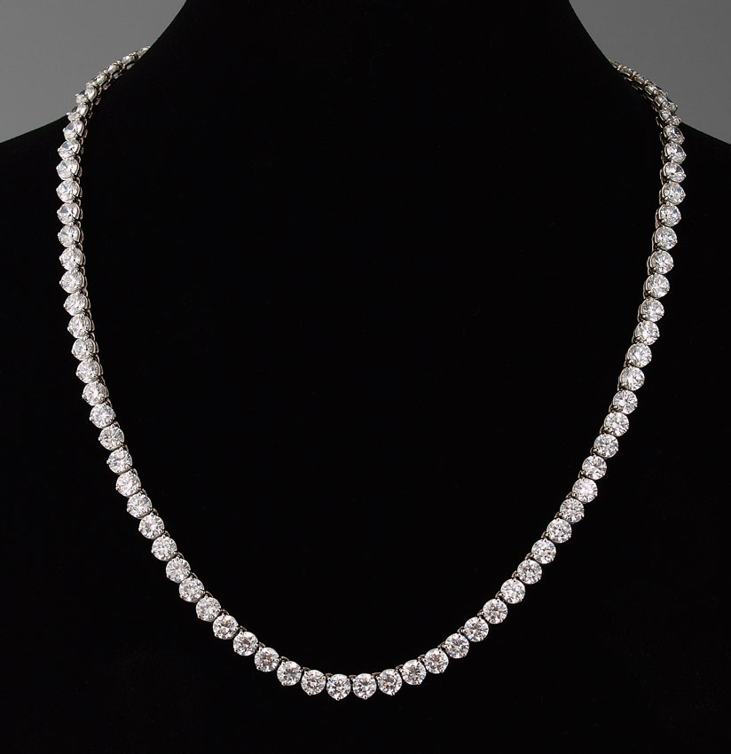 14K RIVIERE NECKLACE: 14K white gold and CZ necklace, 18''L. Mounting weight: 23.3 grams approx.