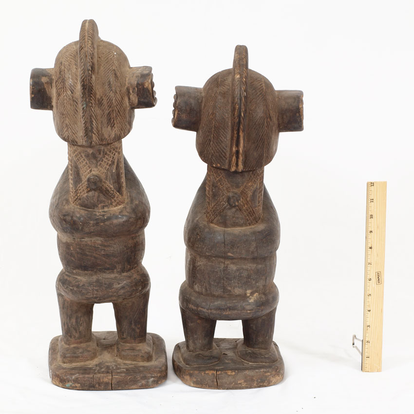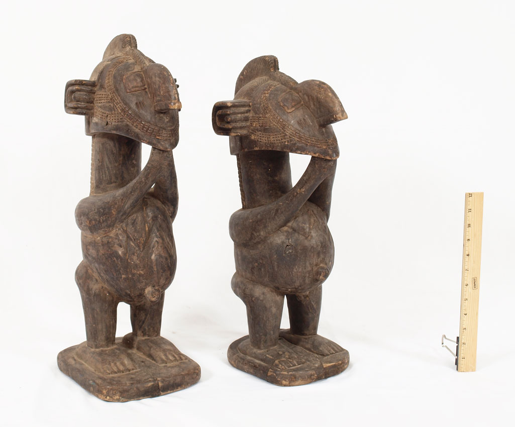 PAIR CARVED AFRICAN BAGA NIMBA FIGURES, GUINEA: 22'' x 8'' x 11'', 8 lbs., & 21'' x 8'' x 11'', 9 lbs.