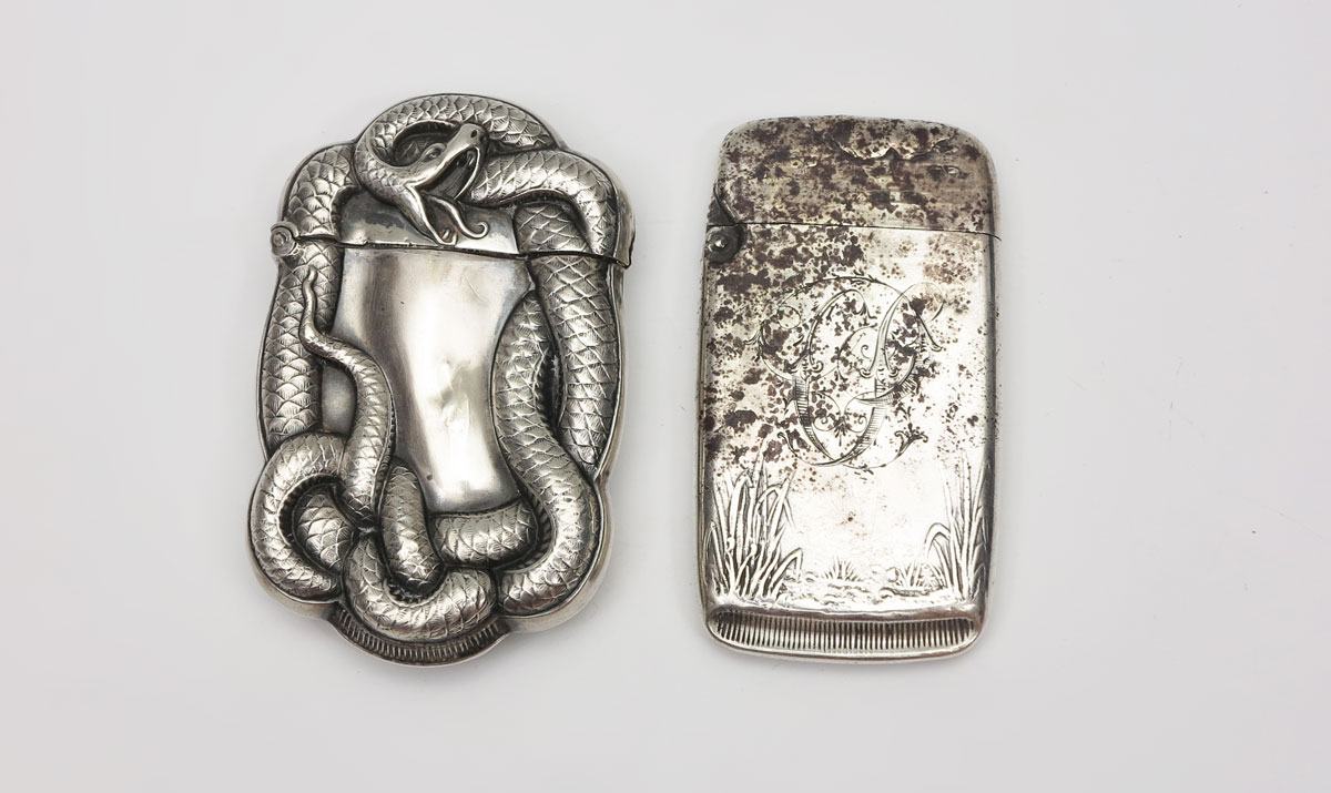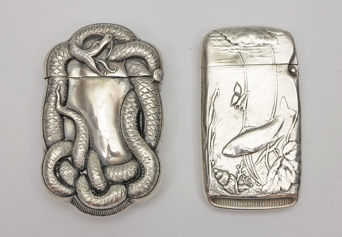 ART NOUVEAU STERLING SILVER MATCH SAFES: To include Fish, Wallace; Snake/dragon, F.S. Gilbert. 1.2 Troy oz.