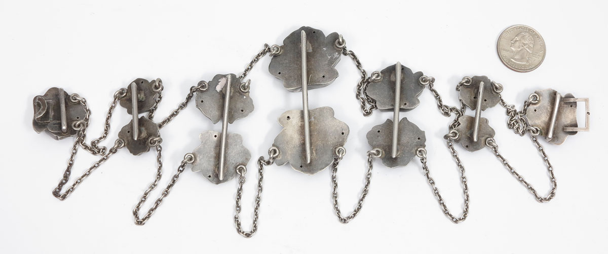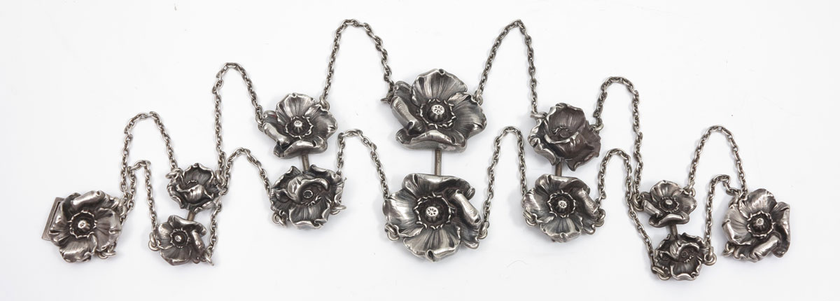 ART NOUVEAU STERLING SILVER BELT: Belt with floral motif, 25 1/2'' l. approx. 3.1 Troy oz.