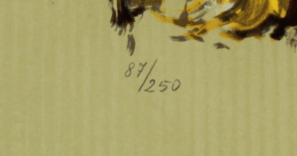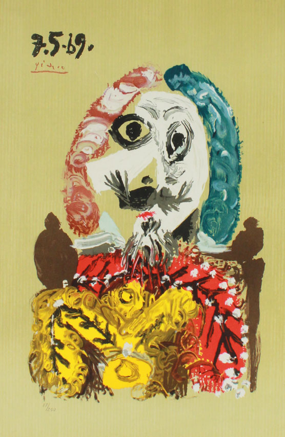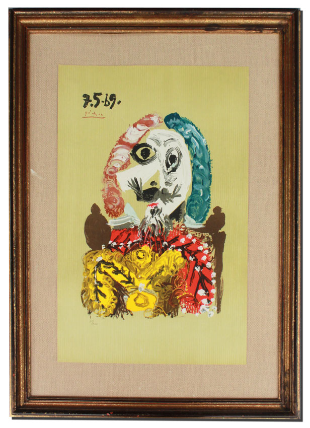 LITHOGRAPH AFTER PICASSO FROM PORTRAITS IMAGINAIRES: 27 1/2'' X 19'', #'d 87/250 lower left, gilded frame with wear, 37'' x 29''.