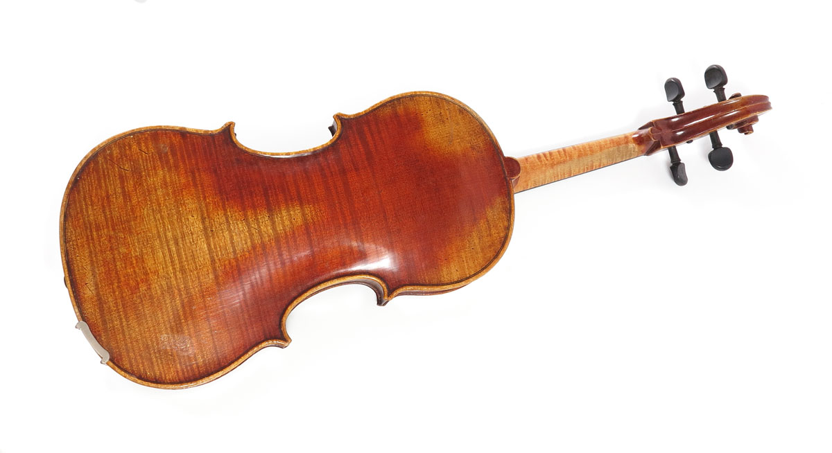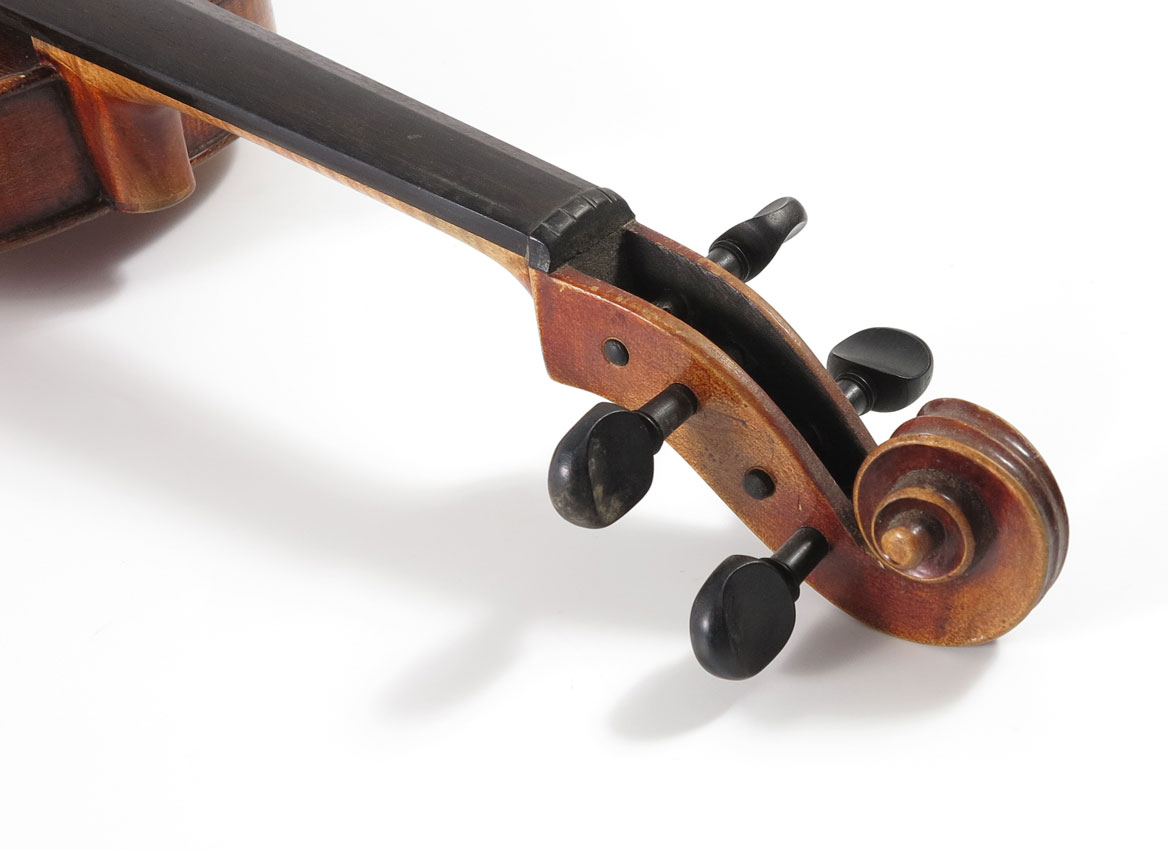CONDITION: Two parellel age splits on top, tailpiece not attached, scuffs and abrasions.