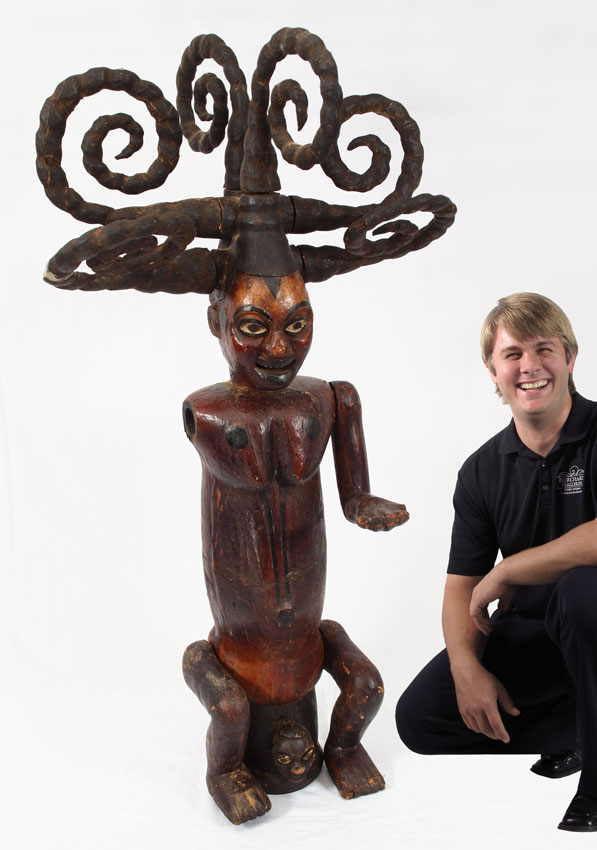 CARVED AFRICAN EKOI FIGURE: 5' 2'' x 23'' x 31'', 38.5 lbs.