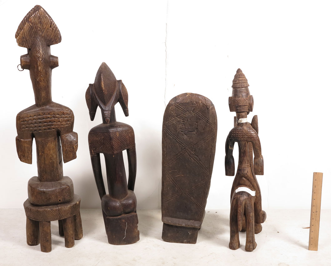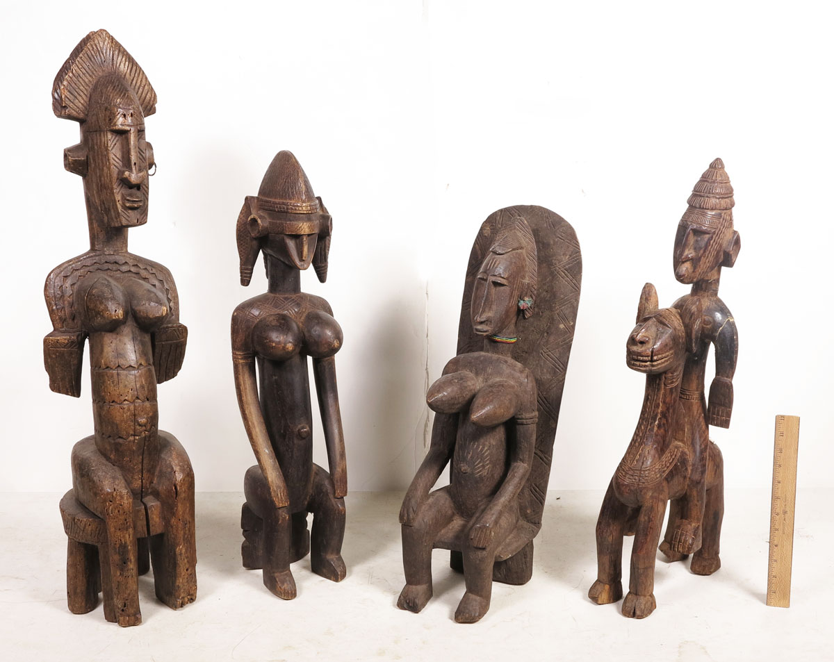4 CARVED AFRICAN SEATED BAMBARA FIGURES