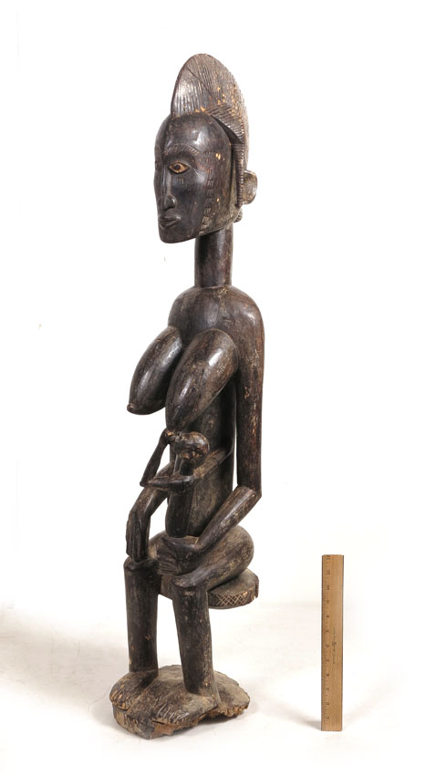 LARGE CARVED AFRICAN BAMBARA MATERNITY FIGURE: 43'' x 8'' x 11'', 17 lbs.