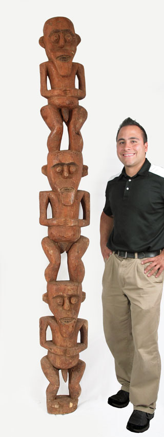 CARVED AFRICAN MAMBILA HOUSE POST, CAMEROON/NIGERIA: 85'' x 13'' x 8'', 59 lbs.
