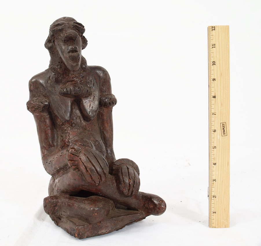 CARVED AFRICAN STONE POTTERY FIGURINE: 13'' x 6'' x 8'', 9.5 lbs.