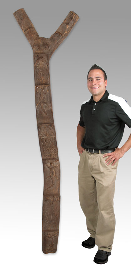 CARVED AFRICAN DOGON GRANARY LADDER, MALI: 93'' x 7'' x 7'', 49.5 lbs.