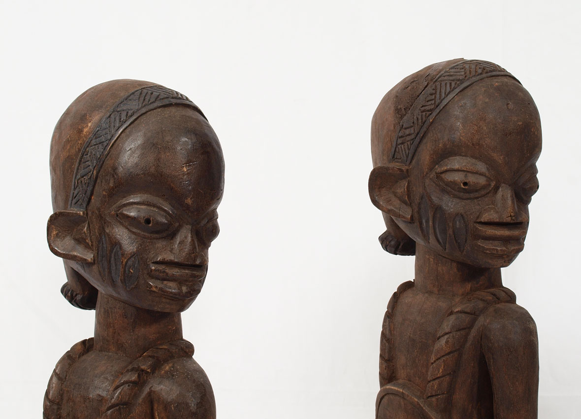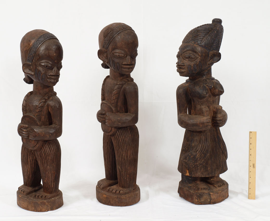 3 CARVED YORUBA FIGURINES: 31'' x 9'' x 8'', 14 lbs., 32'' x 8'' x 7'', 14 lbs., 31'' x 8'' x 6'', 14 lbs.