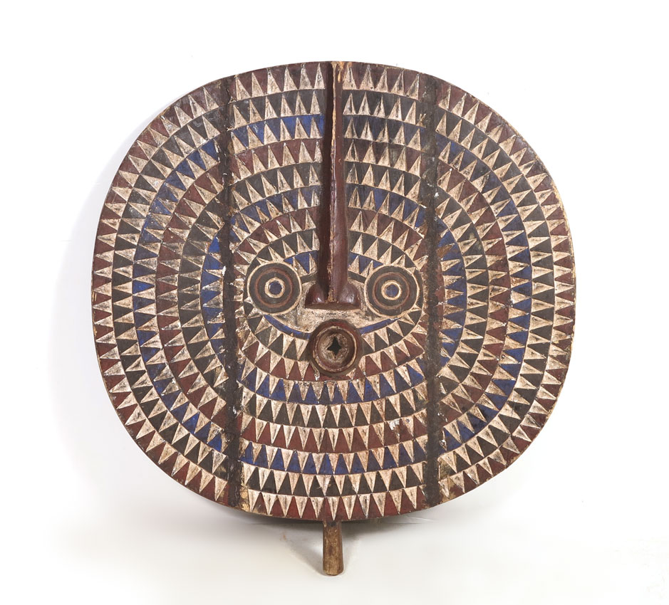CARVED AFRICAN BWA SUN MASK BURKINO FASO: 34'' x 32'' x 4'', 15 lbs.