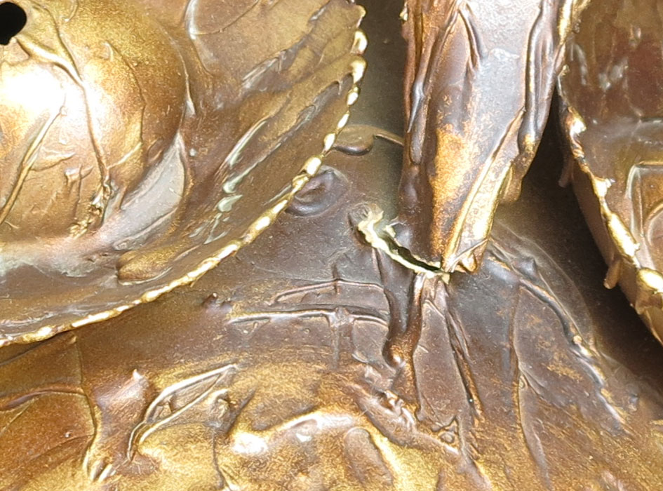 CONDITION: Scratches to base, damage to beak of owl, chip to finish on leg, crack to finish on head.