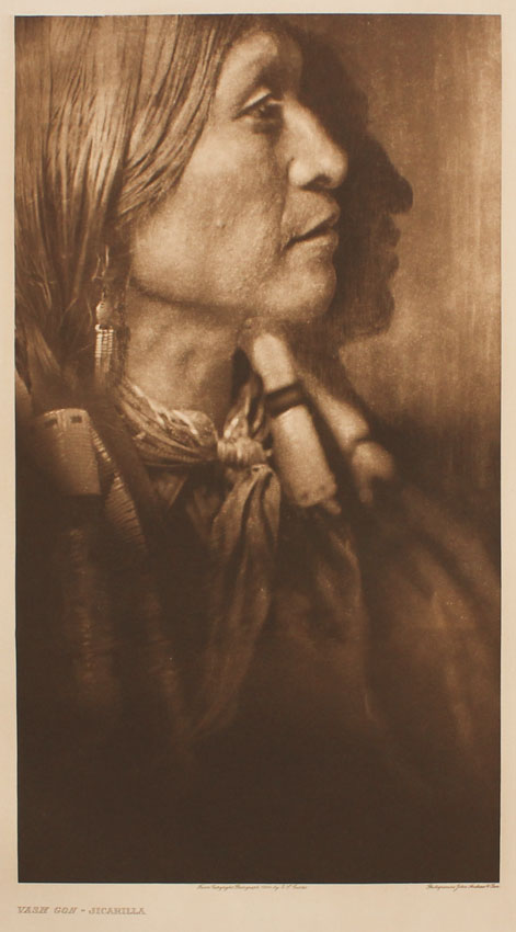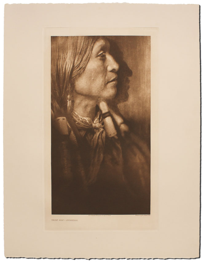 CURTIS, Edward, (American, 1868-1952): ''Vash Gon-Jicarilla'', Photogravure, 22 1/2'' x 17 3/4'' with margins, unframed. Finely printed from the original plate in 1982 by master printmaker, author and teacher Deli Sacilotto, edition size less than 15.