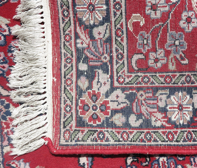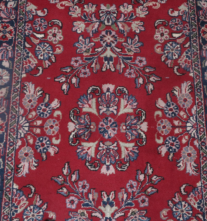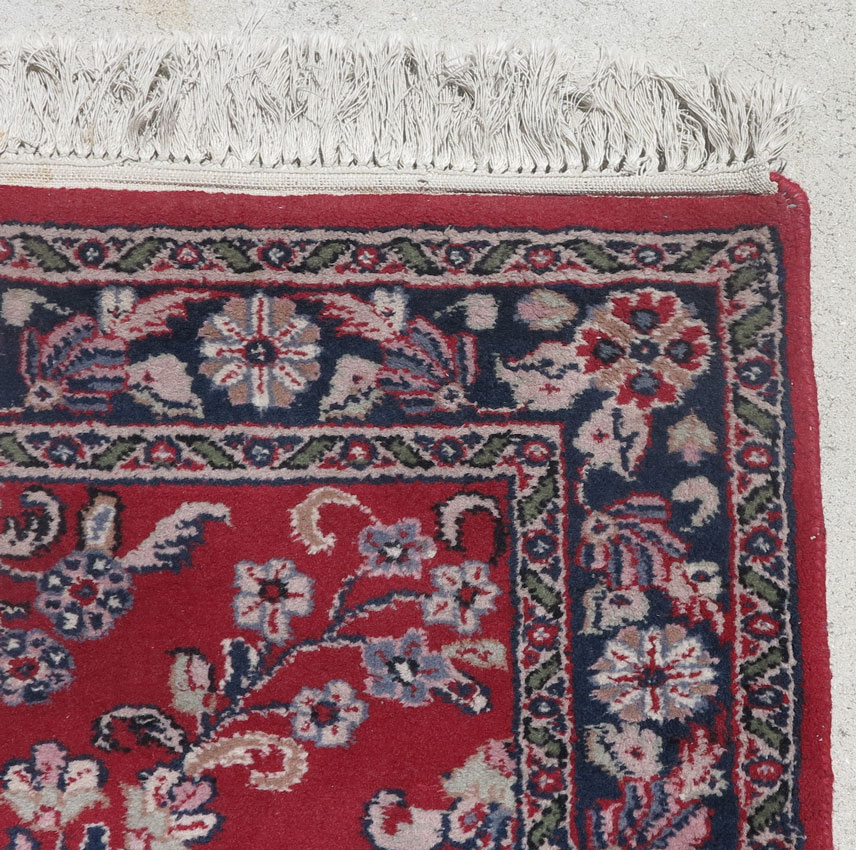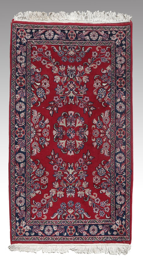 MODERN INDO-PERSIAN HAND KNOTTED WOOL RUG, 3' x 5'1'': This rug with its red ground, covered with sprays of flowers, is a copy of a Sarouk rug. Condition is good.