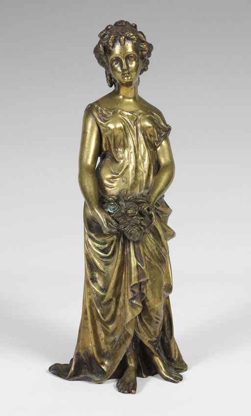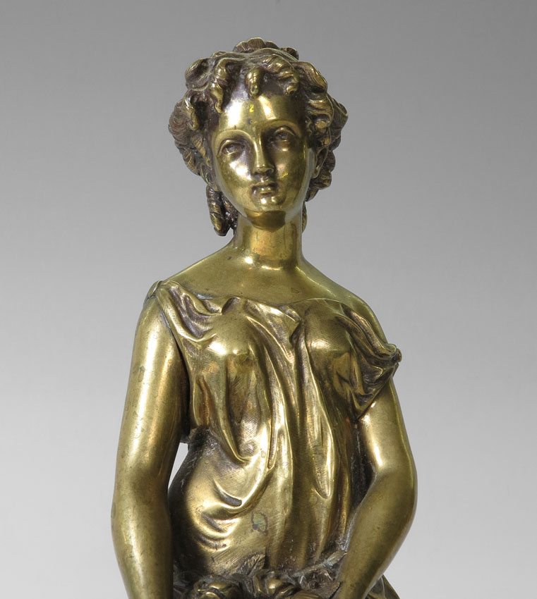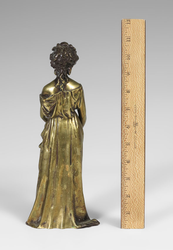 19TH CENTURY BRONZE MAIDEN SCULPTURE: Unsigned, measures 10 1/2'' h., exceptional detail, some wear to patina, probably adorned the top of a fantastic clock at one time.