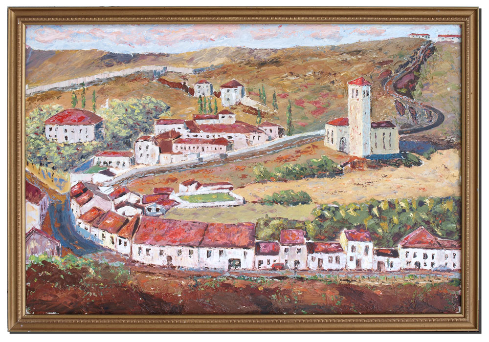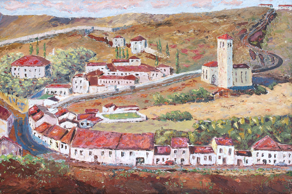 DESMOND, John Justin, (American, 20th Century): ''View of Avila'', OIL/Canvas, titled with artist name, 1987 verso on frame. 23 3/4'' x 36'', contemporary gilt wood frame 26 3/4'' x 38 1/2''. Direct from the artists estate.