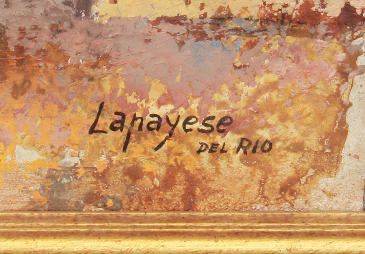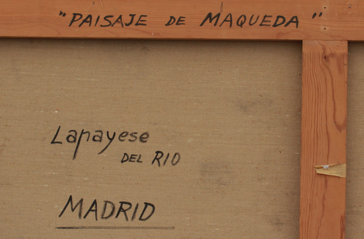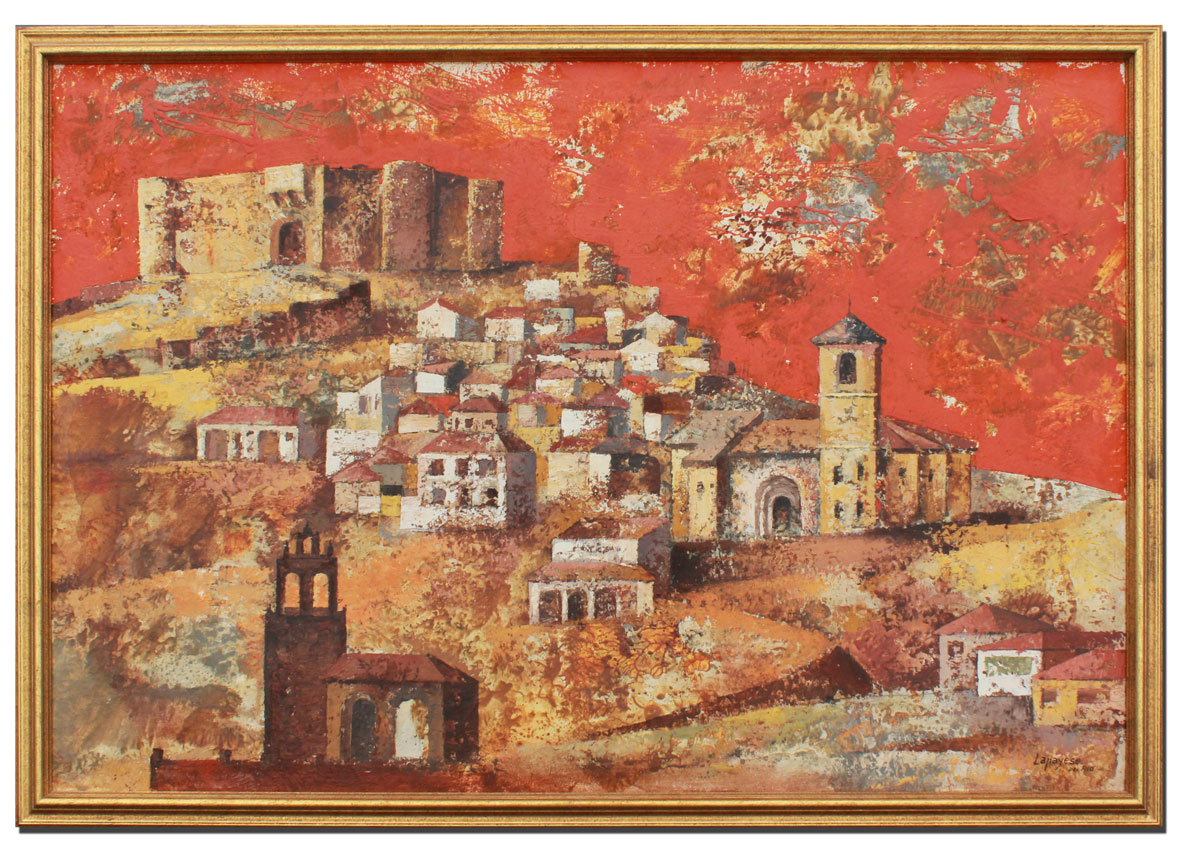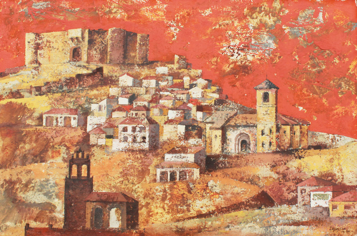 LAPAYESE DEL RIO, Jose Ramon, (Spanish, 1926-2000): ''Paisaje De Maqueda'', Depicts a Town Landscape, Oil/Canvas, 38'' x 57 1/2'', signed lower right, also signed verso with title, encased in original gilded frame, 42'' x 61''.
