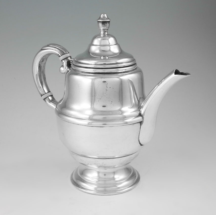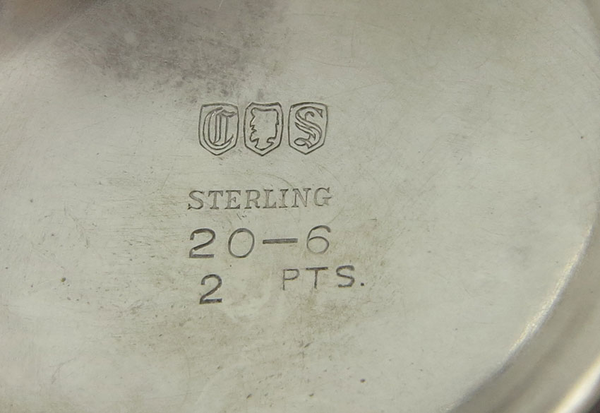 CONCORD STERLING TEAPOT: Marked with Concord Silver Co. hallmark, Sterling, 20-6, 2 Pts. Hinged lid, 8 1/4'' h. x 8 1/2''. Approx. 17.4 troy oz.