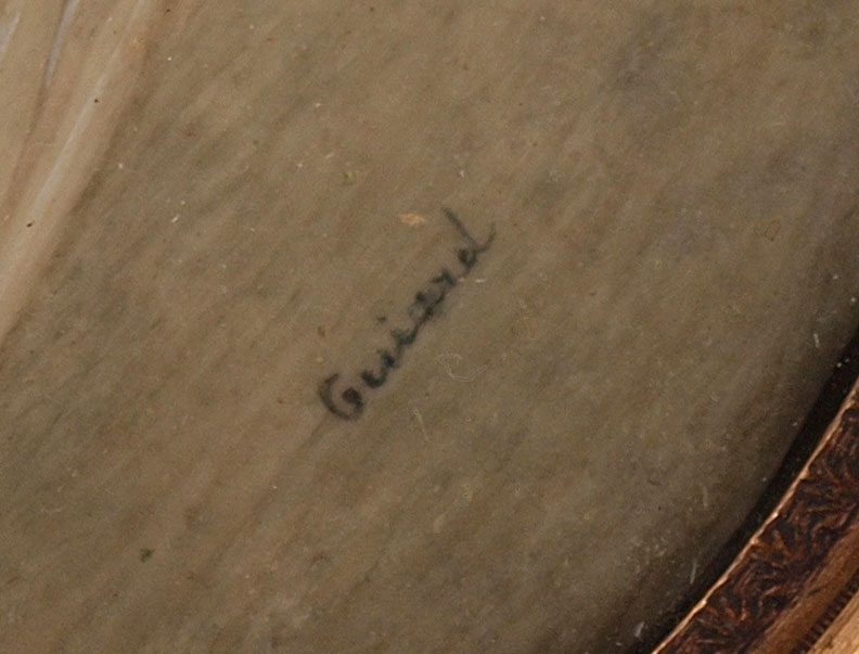 CONDITION: 1.Visible spotting most noticeable in the right margin. 2. Abrasions visible in upper portion and lower left margin. 3. Repair to painted material in upper right corner, some scattered abrasions. 4. Needs cleaning, there has been some paint loss in the upper right corner.