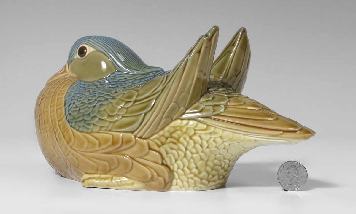 LLADRO MANDARIN DUCK #4715: Vincente Martinez sculptor, issued 1970 retired 1972, impressed Lladro Made in Spain mark, approx. 5''h. x 9 1/2'' x 5 1/2''.