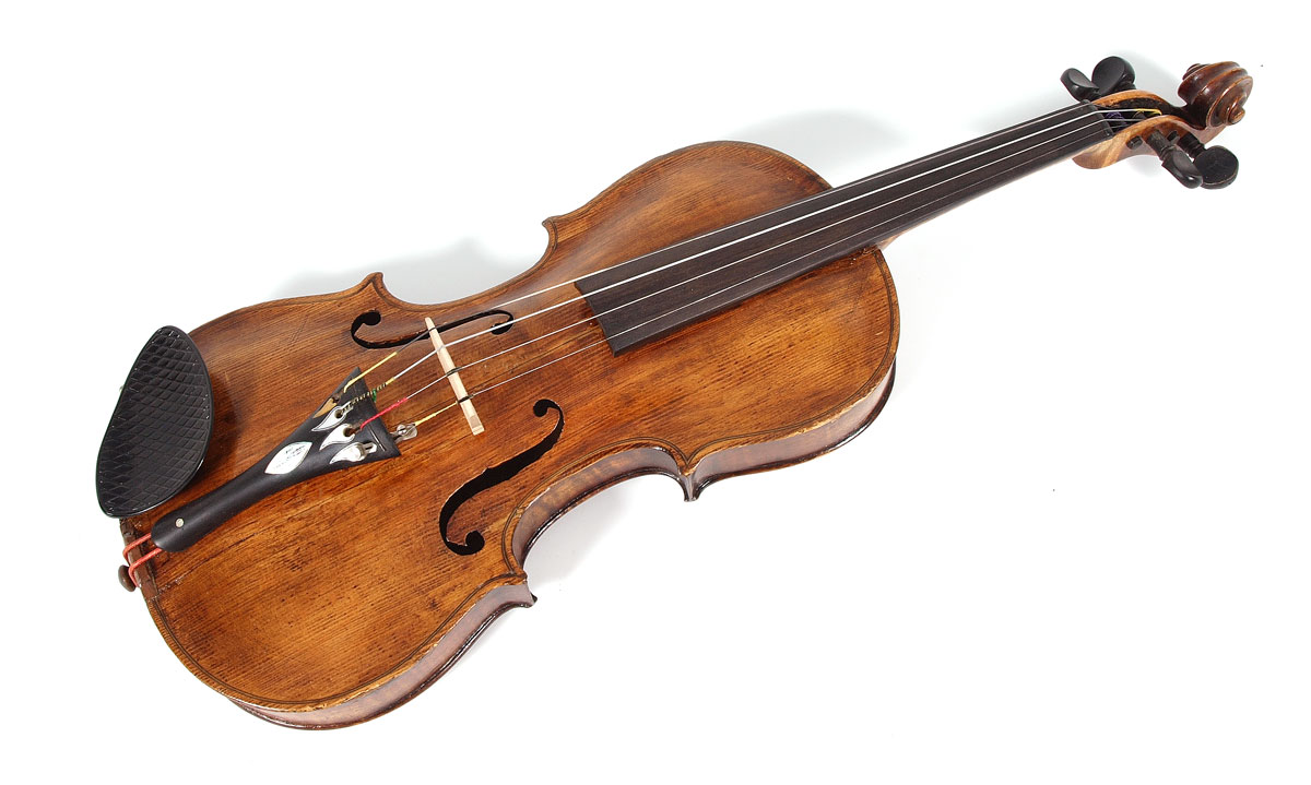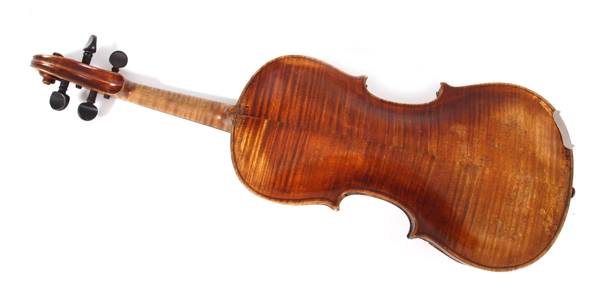 GERMAN AFTER JACOBUS STAINER VIOLIN: Label interior reads Jacobus Stainer in Absam, prope Oeniponium 1665. Impressed Stainer at top of back. Back measures 14 1/4'', overall 23 1/2'' x 7 3/4''. No case or bow.