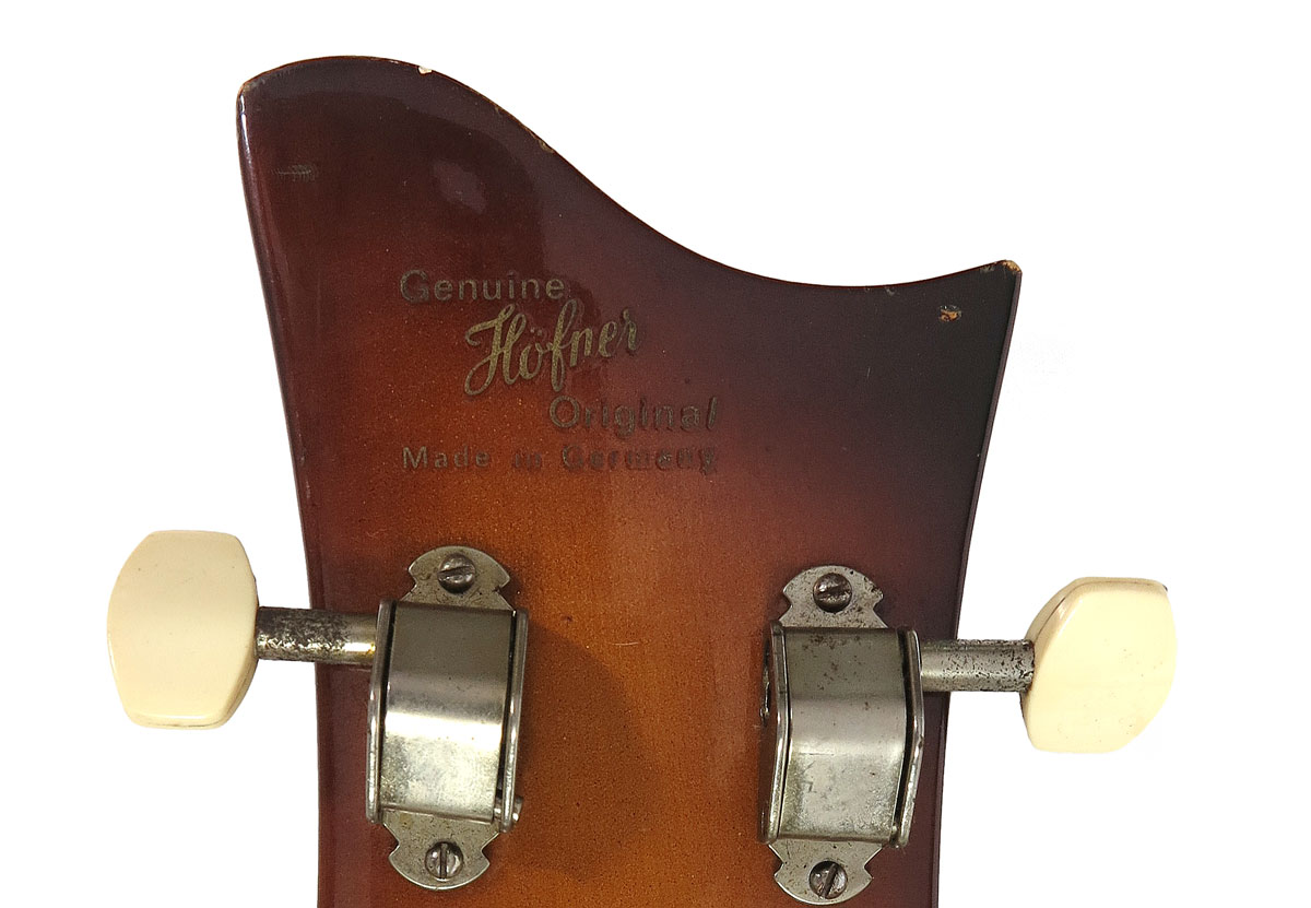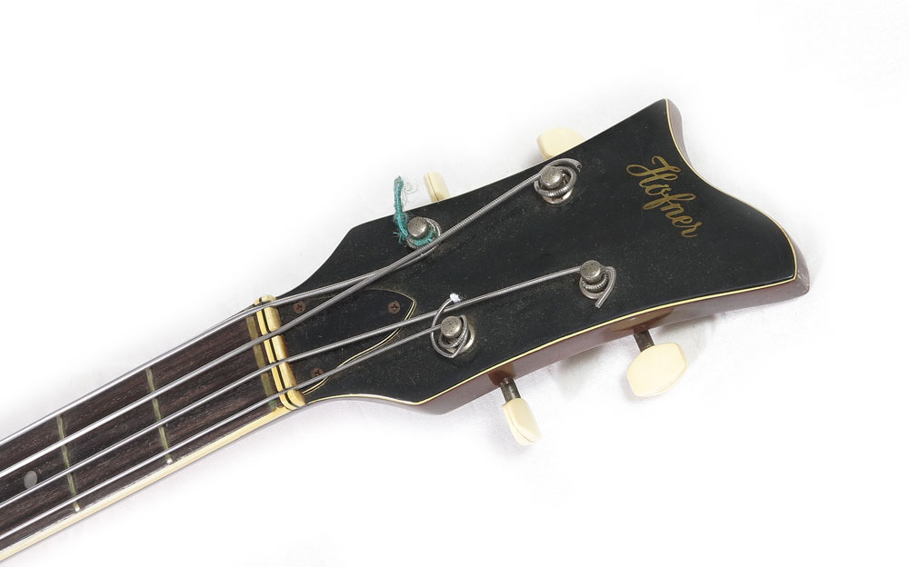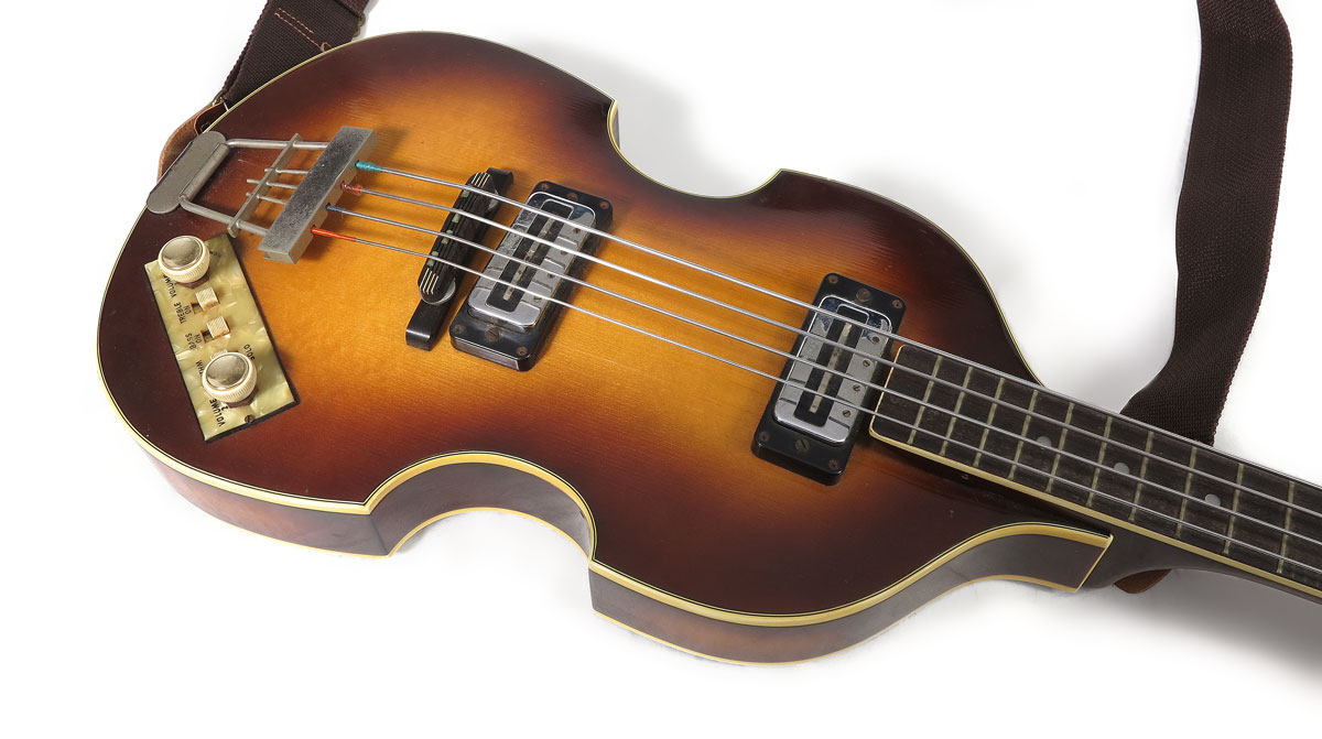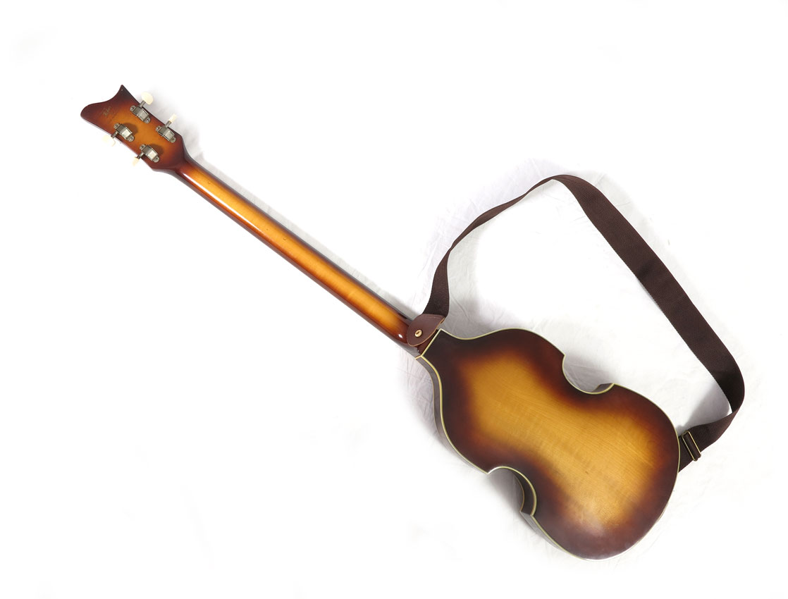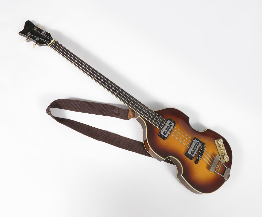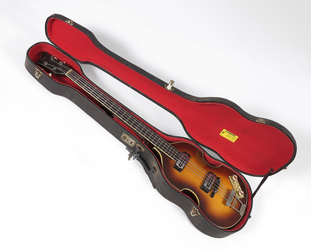 1970 HOFNER 500/1 SUNBURST ELECTRIC BASS: Also known as the ''Beatles Bass'' as this style bass was Paul McCartney's favorite style early in his career. This model is circa 1970, classic sunburst design and appears to be all original. 43'' l. Sold with hard case, 5 3/4'' x 45'' x 13''.