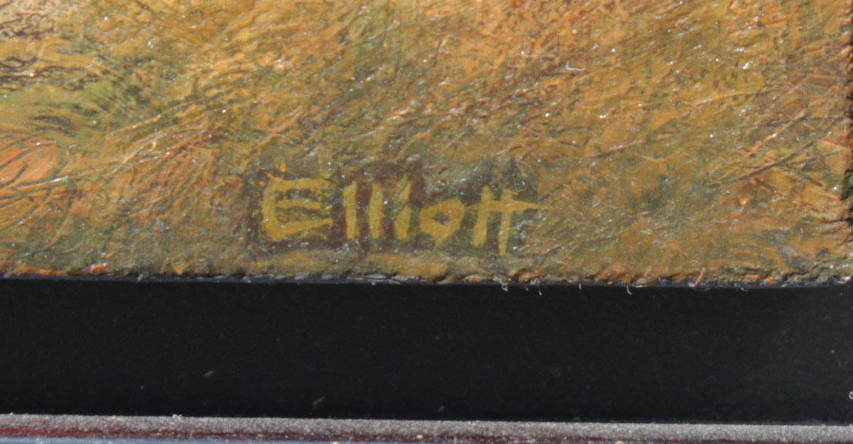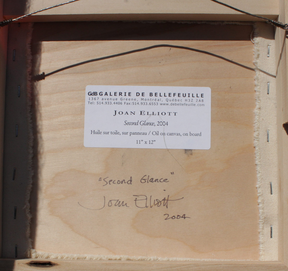 ELLIOTT, Joan, (Canadian, 20/21st C): ''Second Glance, 2004'', Oil/Canvas, 11'' x 12'', signed lower right, signed titled and dated verso with the Galerie de Bellefeuille label affixed verso, fine custom framing 15 3/4'' x 16 3/4''.