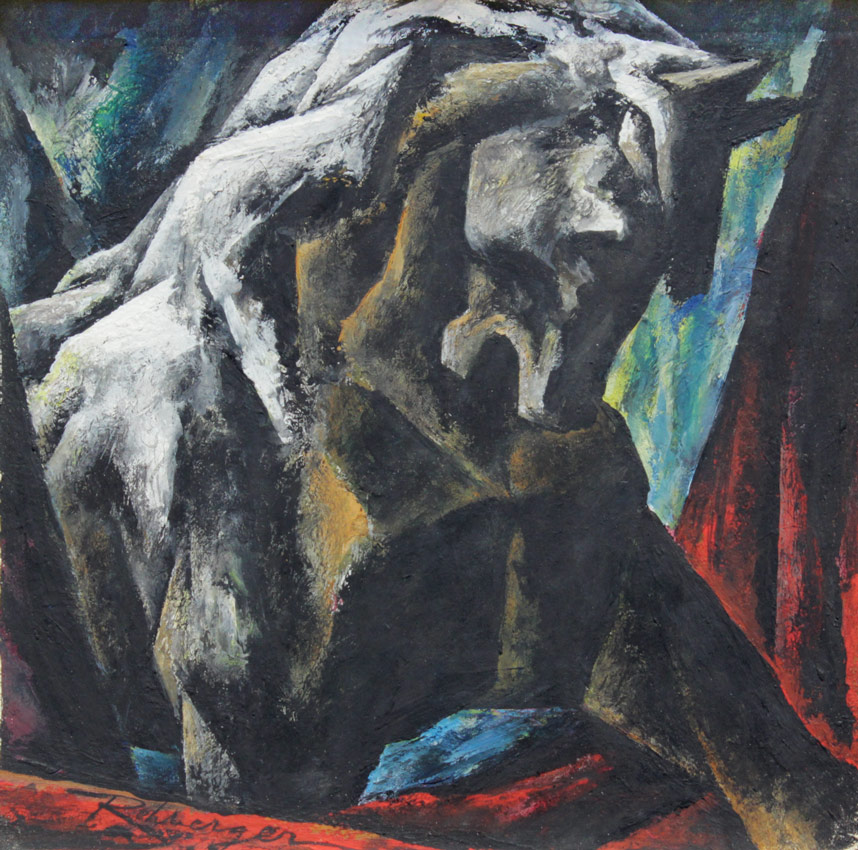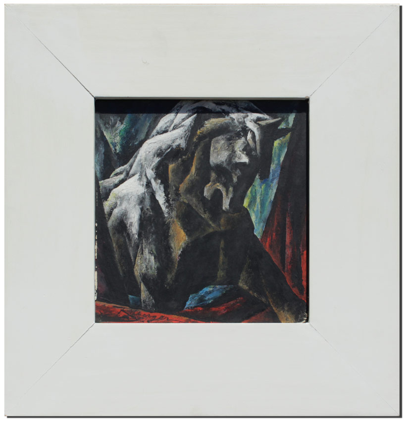 REHBERGER, Gustav, (American, 1910-1995): Modernist Stallion, Oil/Paper, Sight size 9 1/4'' x 9'', signed lower left, painted white frame, 17'' x 16 1/2''.