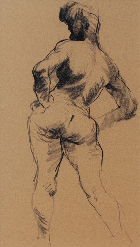 REHBERGER, Gustav, (American, 1910-1995): Standing Female Nude Study, Charcoal, Sight size 16'' x 9'', signed lower left, custom frame 33'' x 24''.