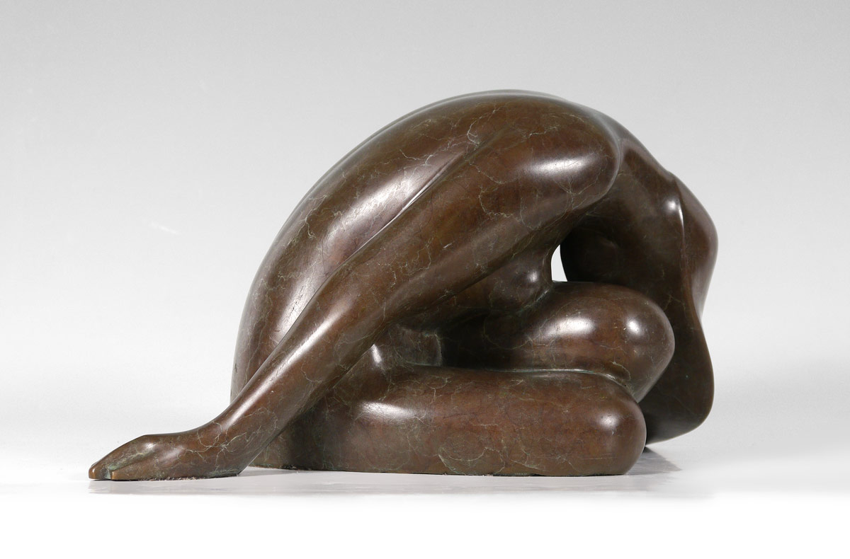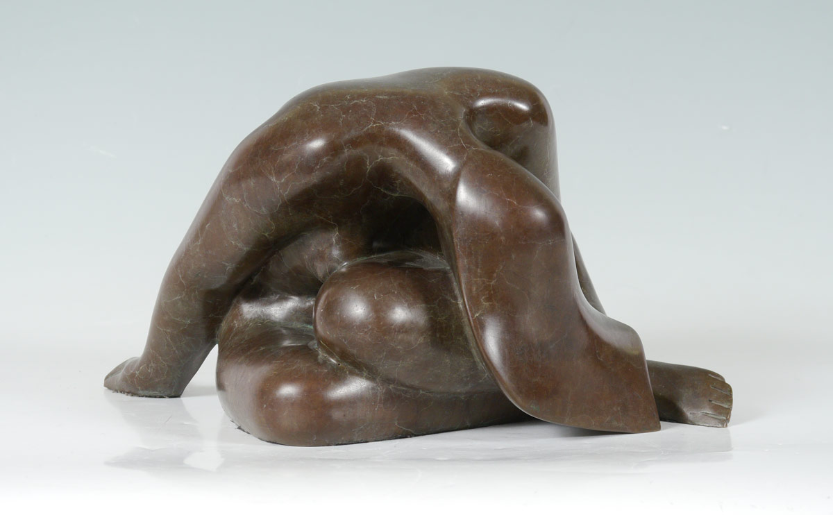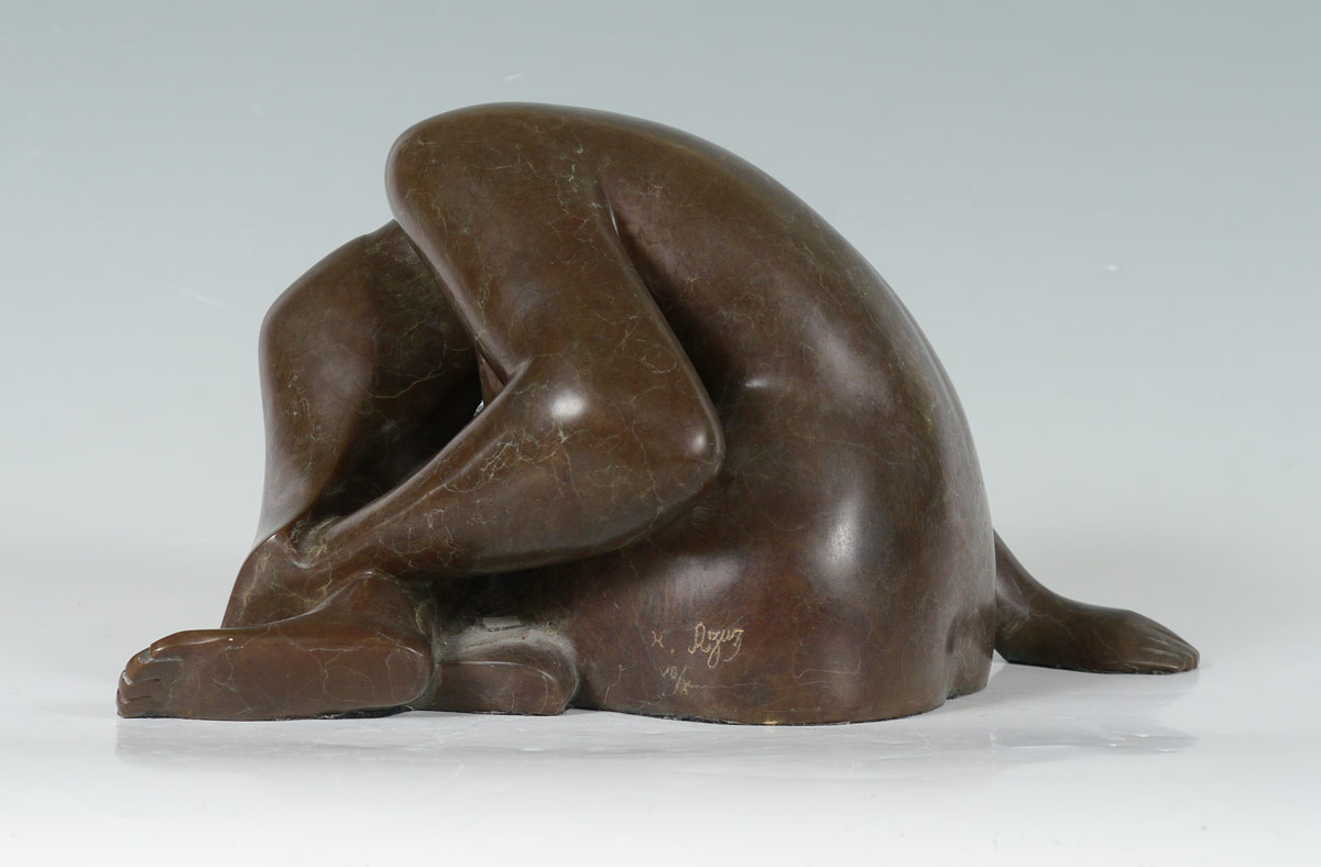 AZUZ, Haim, (Israeli, 20th Century): Seated Nude with Head Bowed, Patinated Bronze, 8'' h., x 16'' w. x 12'' d., incised signature, #'d 8/10.