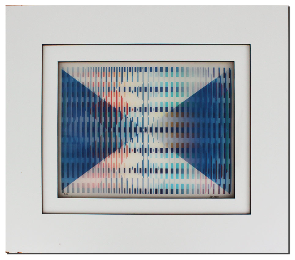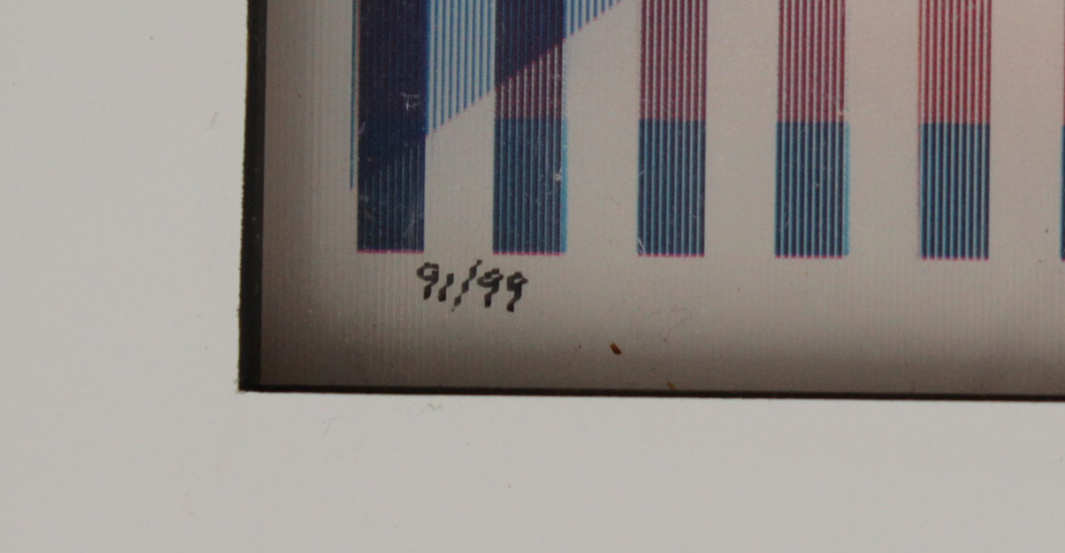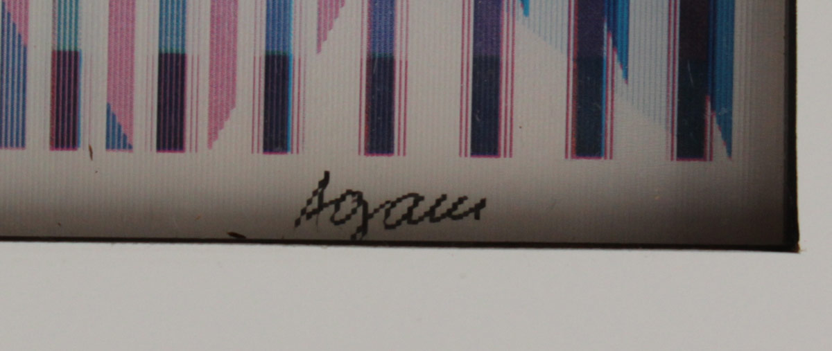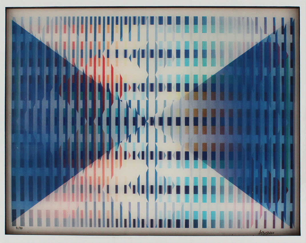 YAACOV AGAM AGAMOGRAPH SIGNED & NUMBERED: ''New Dimensions'', 12'' x 16'', signed lower right, numbered lower left 91/99, custom original frame with minor wear, 21'' x 25''.