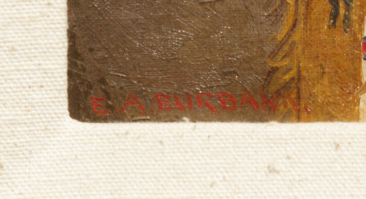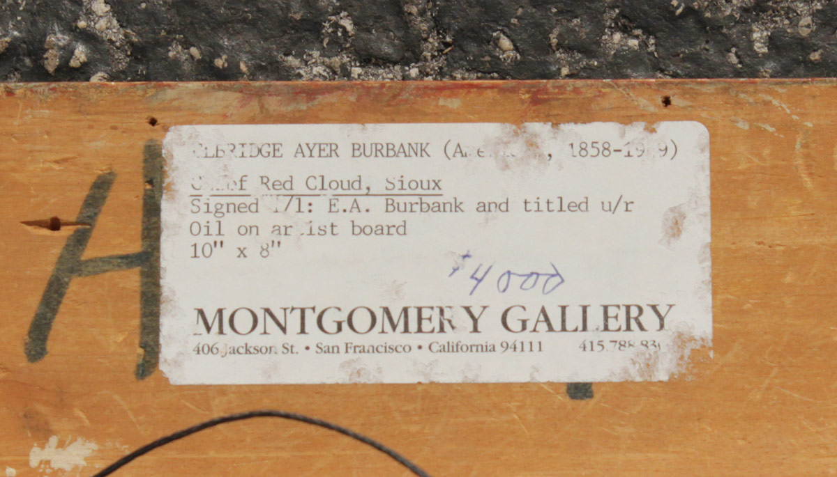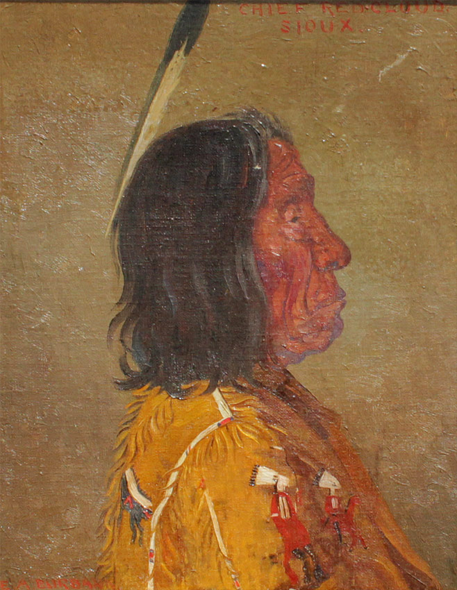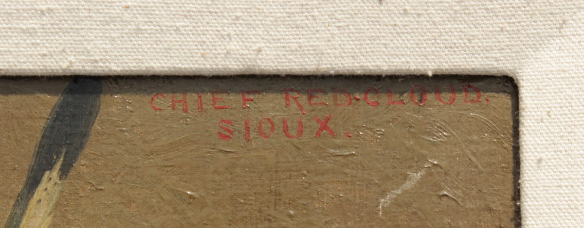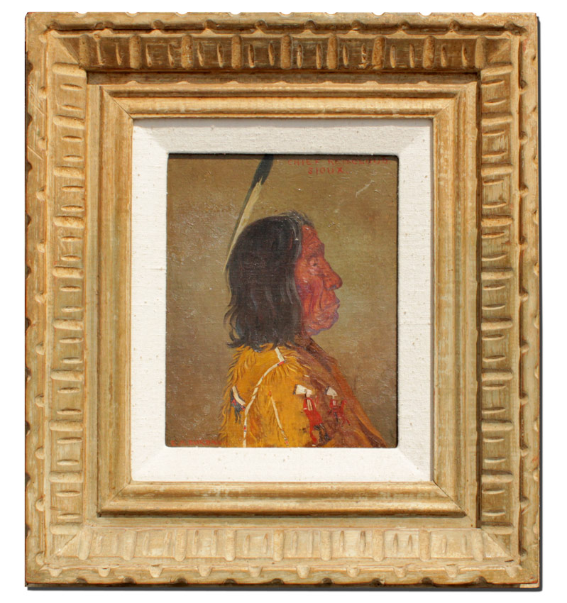 BURBANK, Elbridge Ayer, (American, 1858-1949): ''Chief Red Cloud'', Sioux, Oil/Panel, 12'' x 10'', encased in carved gesso frame, 18 1/2'' x 16 1/2''.