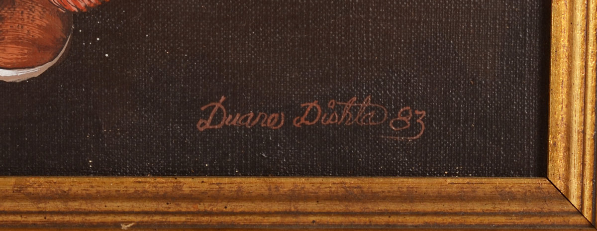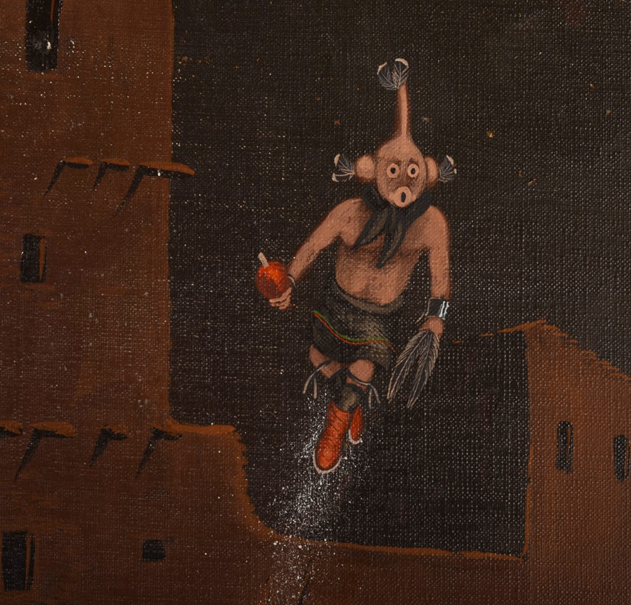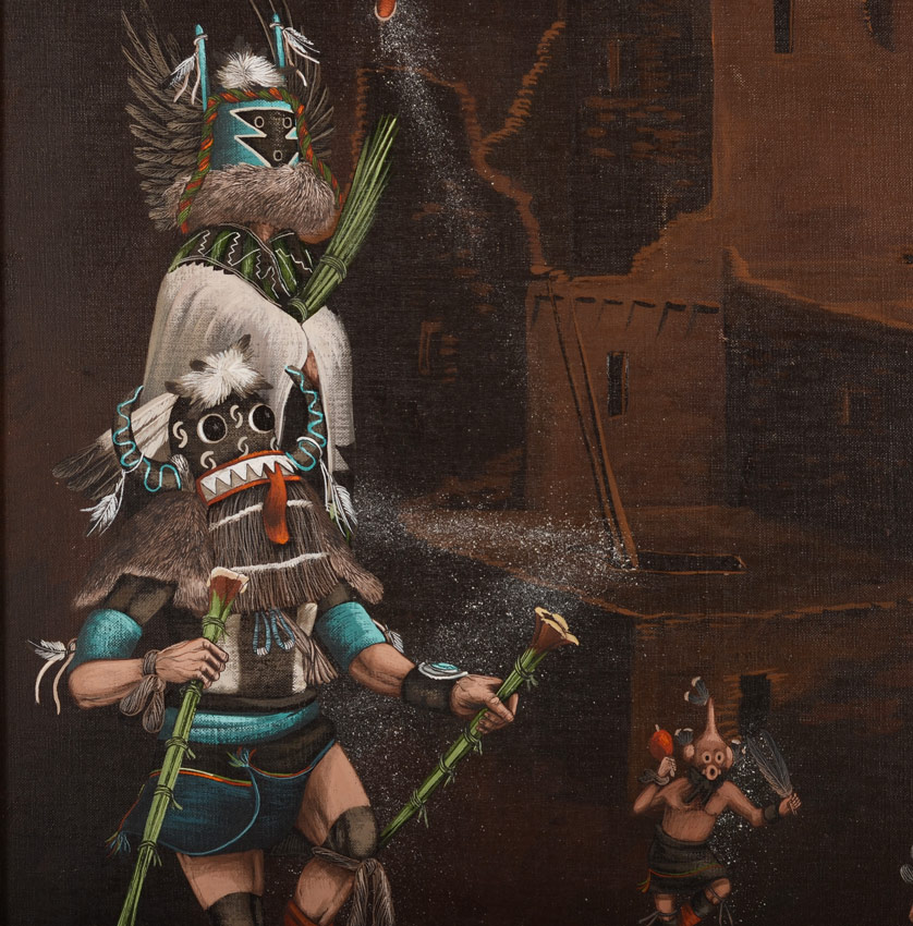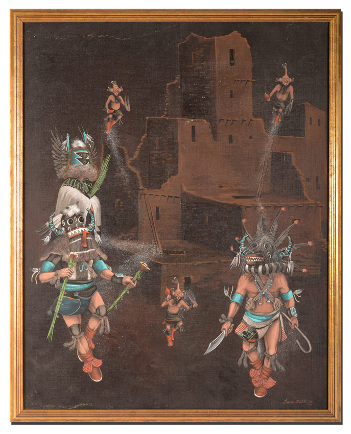 DISHTA, Duane, (American, 1946-2011): Super Natural Medicine Man Pueblo Kachina Painting, Oil/Canvas, 30'' x 24'', signed lower right, dated '83, encased in gilded frame, 31 1/2'' x 25 1/2''.
