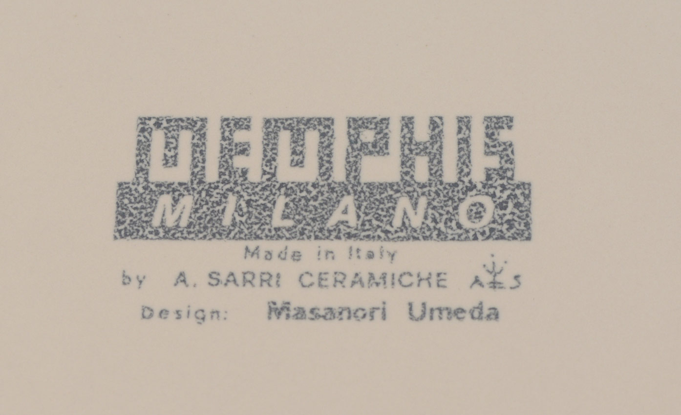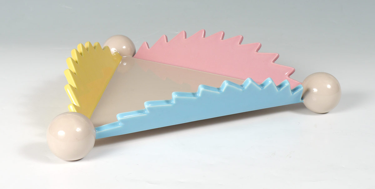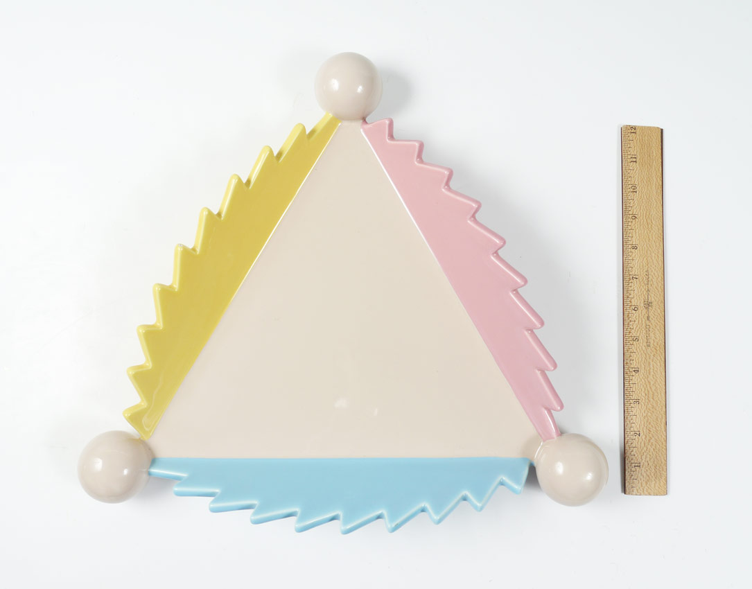MASANORI UMEDA PARANA MEMPHIS FRUIT DISH: Designed by Masanori Umeda, ceramic fruit dish, produced by A. Sarri Ceramiche. Marked Memphis, Milano, Made in Italy. 3'' h. x 16'' each side.