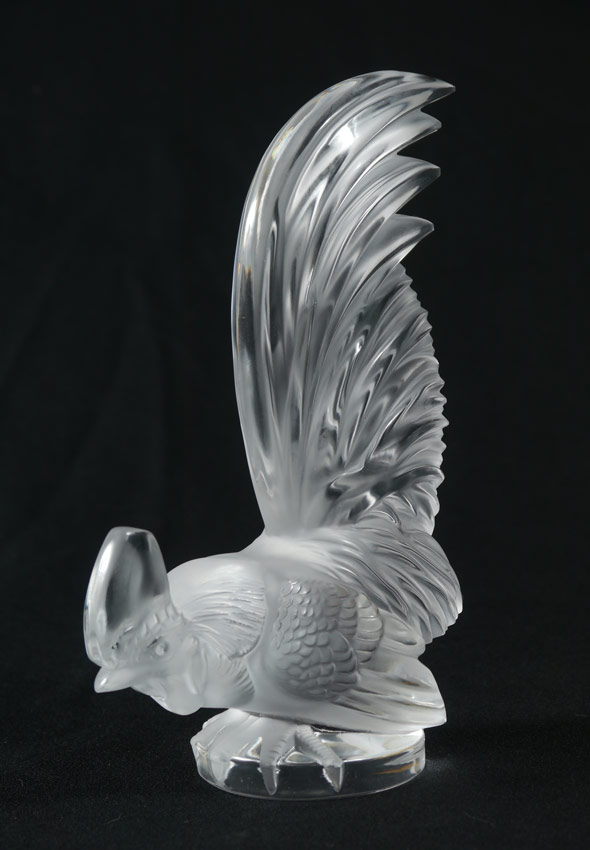 LALIQUE FRENCH CRYSTAL ROOSTER: Etched signature, original foil label, 8'' h. x 5 1/2''.