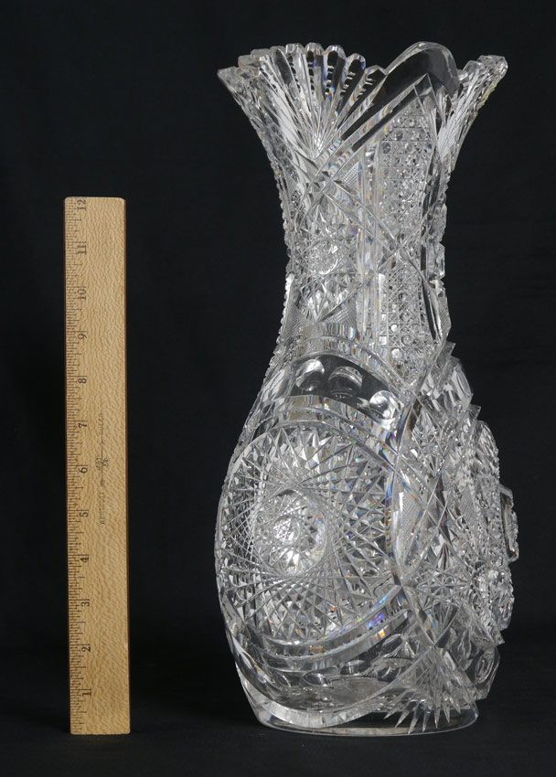 AMERICAN BRILLIANT PERIOD CUT GLASS BOWLING PIN VASE: A most impressive 15.25'' tall.