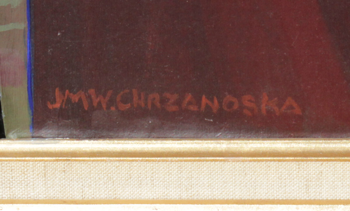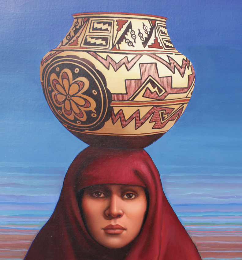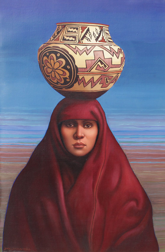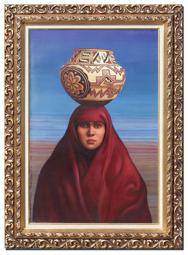CHRZANOSKA, Jane Whiting, (American, 1948- ): ''Zuni Woman'', Oil/Canvas stretched over a wood back protective frame, 37'' x 25'', signed JMW Chrzanoska lower left, encased in ornate frame, 44 1/2'' x 32 1/2''.