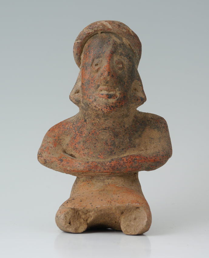 PRE-COLUMBIAN FIGURE OF A SEATED MAN: Missing feet, age unknown. Measures 4 7/8'' h.