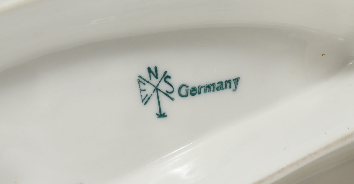 KARL ENS GERMAN PORCELAIN HORSE FIGURAL GROUP: 2 running horses by Karl Ens, green underglaze mark on base. Measures 9 1/2'' h. x 12''.