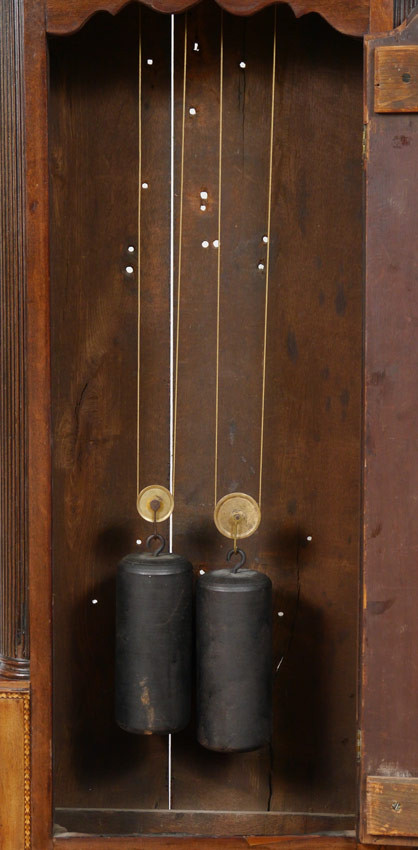 CONDITION: Wear and repairs to case, missing inlay near base on corners, repair to one shell inlay. Pendulum missing suspension spring.