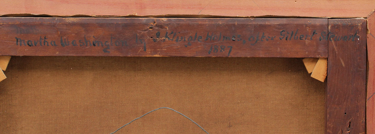 HOLMES, Georgiana Klingle, (American, 1875- ): Portrait of Martha Washington after Gilbert Stuart, Oil/Canvas, 24'' x 20'', signed verso on the stretcher, dated 1887, newer gold frame 27 1/2'' x 23 1/2''.