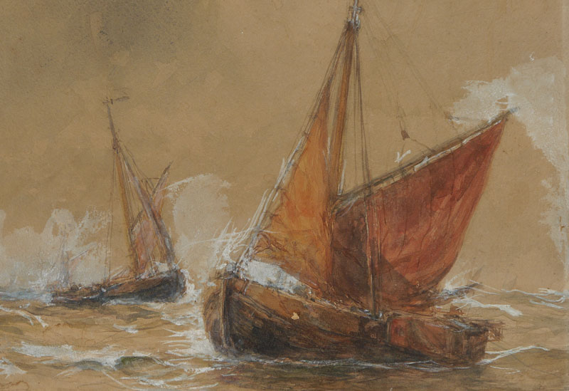 SEGHERS, Henri, (1823-1905): Study of Two Dutch Fishing Boats, Watercolor, 22 1/4'' x 15'', signed lower right, unframed, and laid down on cardboard.