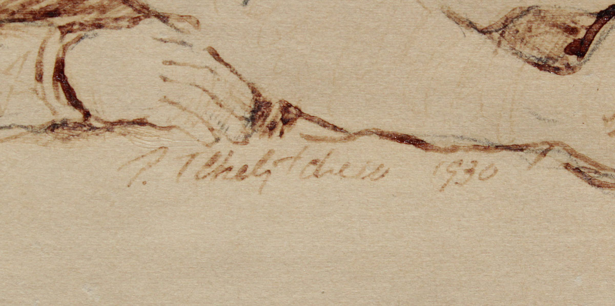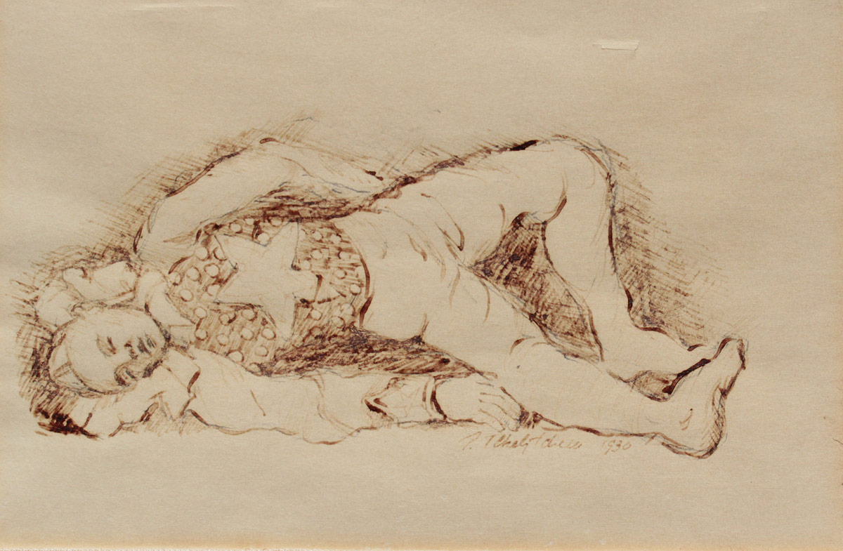 TCHELITCHEW, Pavel Fedorovich, (Russian-American, 1898-1957): Sleeping Clown, Pen & Ink Drawing, 8 3/4'' x 12'' with margins, signed lower right, dated 1930, worn frame 10 1/4'' x 13 1/2''.