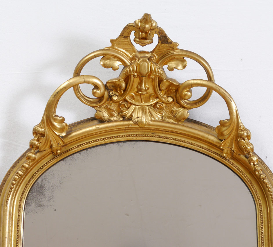 CONDITION: Loss of gilt, age cracks to crest, typical spotting & silver loss to mirror.