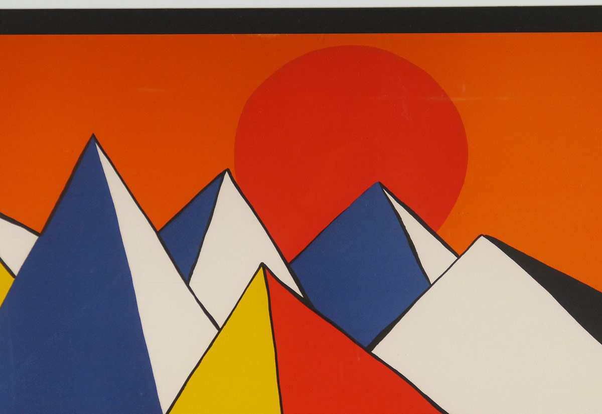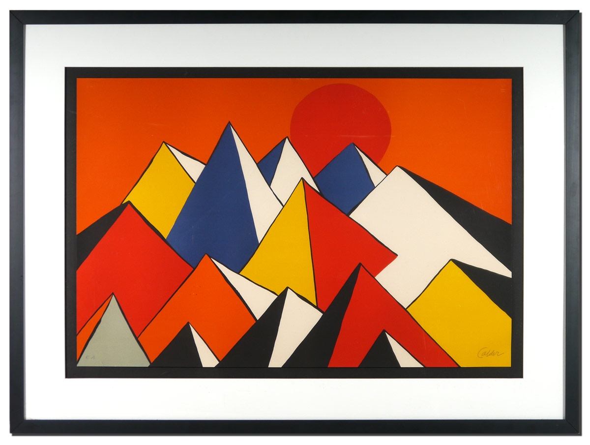 CALDER, Alexander, (American, 1898-1976): ''Pyramids'', Lithograph, 25 3/4'' x 39'', pencil signed lower right, pencil marked E.A. lower left, encased in contemporary frame 38'' x 51 1/2''.