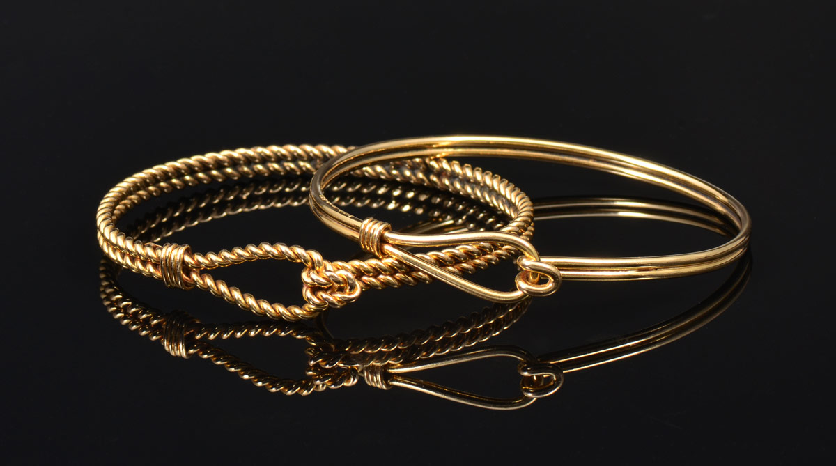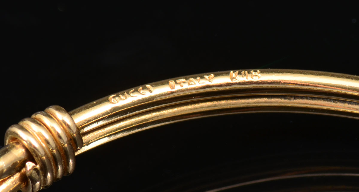 TWO GUCCI 18K GOLD BRACELETS: Ca. 1970's. One bracelet in a rope twist design. Both are signed Gucci Italy 18K. Inside diameters, 2 3/8''. Total weight 35.7 grams.