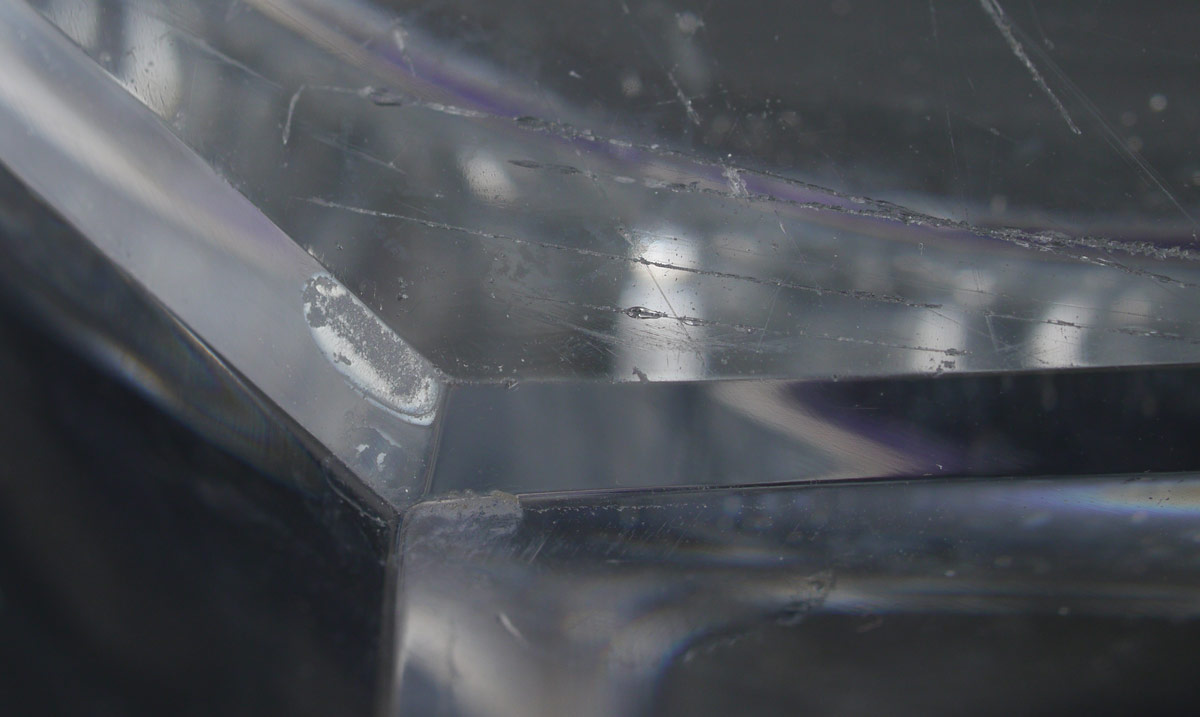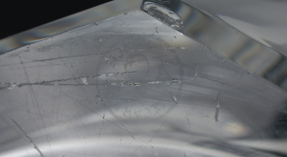 CONDITION: Scratches to base, ring of sickness about half way down.